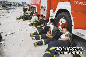 來自滄州的消防官兵現(xiàn)場救援。 來自唐山的消防官兵現(xiàn)場短暫休息。 供圖/消防部門 燕趙晚報訊(記者馬冬勝)昨日7時許,增援天津的232名河北消防官兵在爆炸事故現(xiàn)場經(jīng)過16個小時英